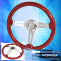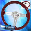 345mm Deep Dish Steering Wheel Black Center Red Wood + Jdm Koreisha Horn Button