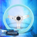 Universal JDM 14" 350mm Teal Chrome Steel Heavy Duty Deep Steering Wheel +Button