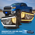 For 14-21 Toyota Tundra Clear Sequential LED DRL Bar Headlights Lamps Left+Right