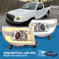 For 05-11 Toyota Tacoma Chrome Sequential LED DRL Projector Headlights Lamps Set